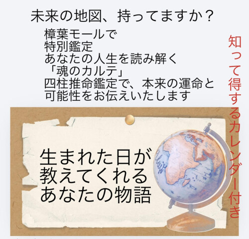 生年月日より四柱推命鑑定と一生変わることのない自分を知ることのできる魂のカルテの数値とカードリーディングで今日の私を知る占いを行います。