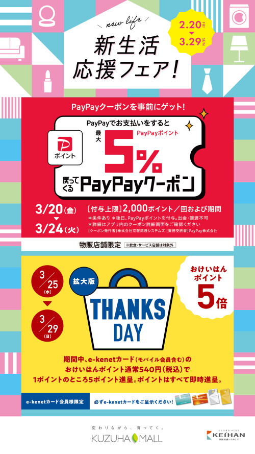 期間中、KUZUHA MALL専門店をご利用の際、e-kenetカードをご呈示いただくと、