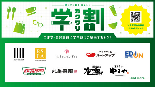 対象店舗にて学生証をご提示いただくと、おトクなサービス・特典が受けられます!
