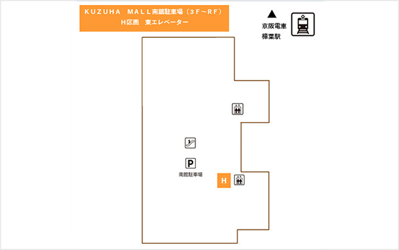 南館駐車場からお越しの方は、南館駐車場3階~RFのペット同伴可のH区画・東エレベーターをご使用ください。