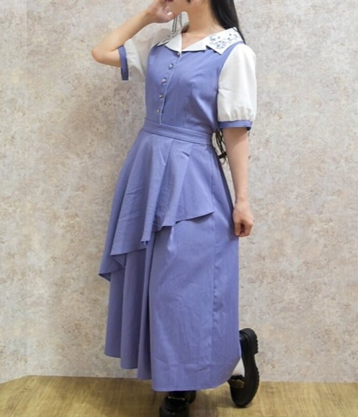 月をメインモチーフにした天体星空のオリジナル刺繍が華やかな、開襟のドッキングワンピースです